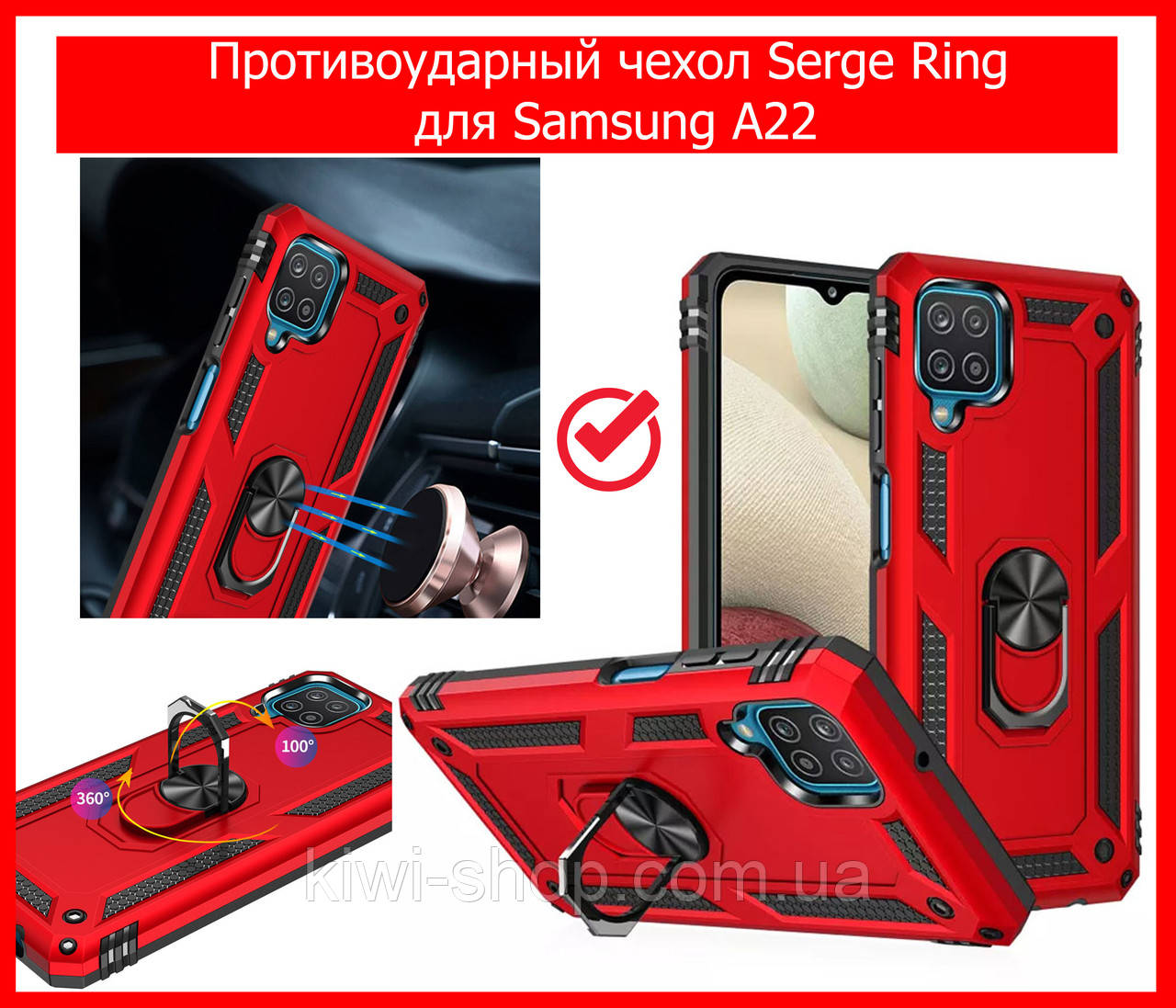 | Тип призначення | Протиударний чохол Serge Ring для Samsung Galaxy A22 4G червоний, ударостійкий чохол на Самсунг А22 з кільцем |