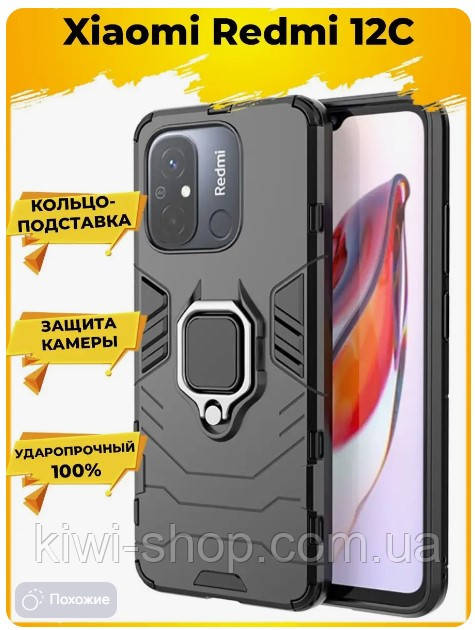 Чохол для Xiaomi Redmi 12C протиударний з кільцем і високими бортами і захистом камери ЧОРНИЙ ударостійкий, чехол Redmi 12C